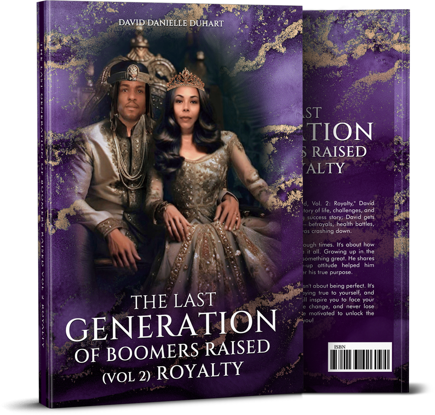 The book “Last Generation of Boomers Raised, Vol. 2: Royalty,” David Danielle Duhart continues his powerful story of life, challenges, and triumph. This isn’t just a smooth-sailing success story; David gets real about the hard knocks he’s taken – betrayals, health battles, and times when life felt like it was crashing down. But this book is about more than just tough times. It’s about how David found the strength to rise above it all. Growing up in the Boomer era, he always felt destined for something great. He shares how faith, family, and a never-give-up attitude helped him overcome obstacles and discover his true purpose. David’s story is a reminder that success isn’t about being perfect. It’s about learning from your mistakes, staying true to yourself, and finding the royalty within. This book will inspire you to face your own challenges with courage, embrace change, and never lose sight of your dreams. Get ready to be motivated to unlock the greatness inside you!